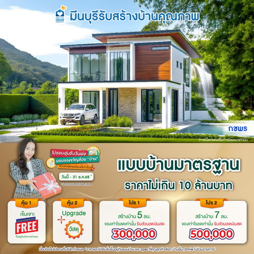 โปรอบอุ่นรับวันพ่อ มอบของขวัญด้วย"บ้าน"! แบบบ้านมาตรฐาน ราคา 5 ลบ. รับส่วนลดเงินสด 300,000 บ. หรือบ้าน ราคา 7 ลบ. รับส่วนลดเงินสด 500,000 บ. อย่าพลาด วันนี้-31 ธันวาคม 2568