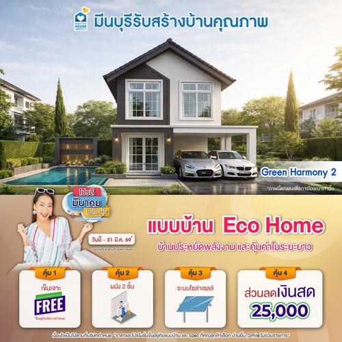 โปรดี มีนาคม ไม่ต้องลุ้น! แบบบ้าน Eco Home รับส่วนลดเงินสด 25,000 บ. อย่าพลาด วันนี้-31 มีนาคม 2569
